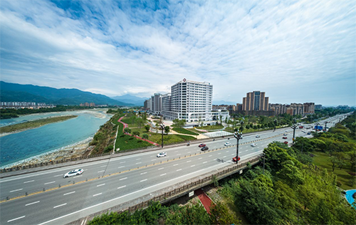 院區(qū)占地100畝,建筑面積15.1萬(wàn)平方米,1200床,由科圖一體化設(shè)計(jì)。建筑設(shè)計(jì)以“山水文”為型,服務(wù)于“人”為理念,將建筑的天際線隱于山巒與水文之間,波瀾起伏,氣勢(shì)磅礴,融合了醫(yī)養(yǎng)功能與美學(xué),成為都江堰岷江之濱上一座矚目的城市地標(biāo)。